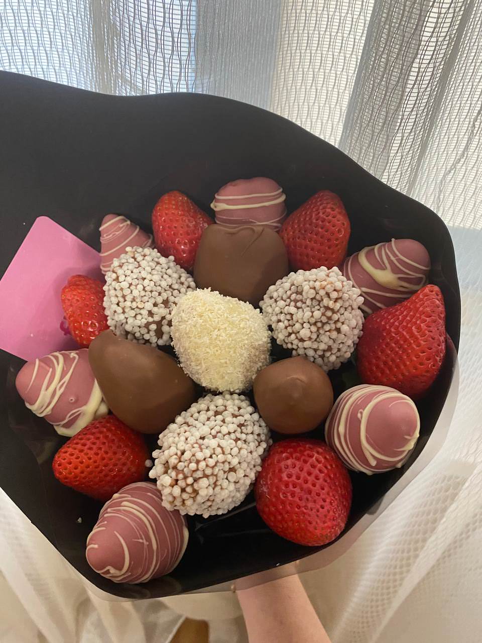 Роскошный букет алых альстромерий — воплощение страсти и ярких эмоций. Насыщенный красный оттенок лепестков в сочетании с нежной зеленью создаёт гармоничный образ, который станет эффектным подарком для любого торжества.